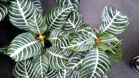 シマウマの植物 Aphelandra 二粒系 装飾的な多年生草本で白い静脈と濃い緑色の大きな葉観葉植物 時々 適当な条件の下で黄色の花の生産 の写真素材 画像素材 Image